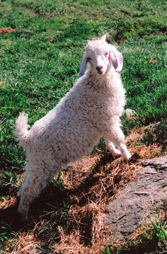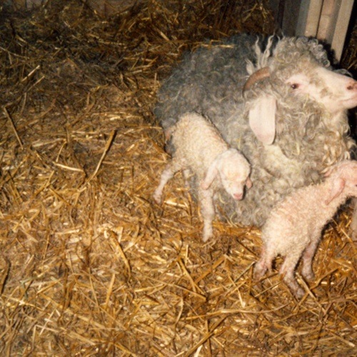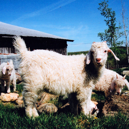 La durée de gestation de la chèvre angora est d’environ cinq mois. Elle donne un ou deux petits, et plus rarement trois. Dans ce dernier cas, un des triplets est presque à tout coup un bébé-biberon qui finit par suivre les éleveurs (devenus papa et maman) partout comme un petit chien.