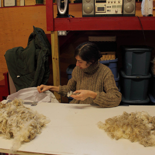 Après chaque tonte commence le fastidieux travail de préparation des toisons en vue de leur envoi aux filatures. Il faut classifier le mohair, éliminer des toisons les doubles coupes, les mèches souillées et le maximum de débris végétaux.