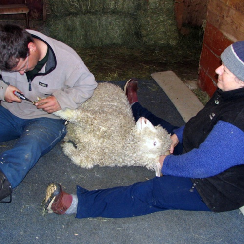 Coupe des onglons. Vermifuges. Nettoyage des parties de toison souillées par l’urine (jambes arrière des femelles et ventre des boucs). Attention particulière portées aux bêtes présentées aux concours.